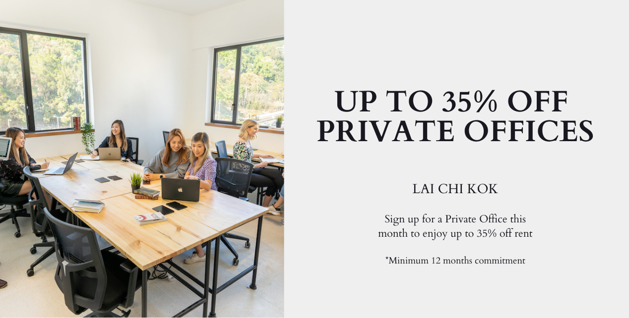 Sign up for a Private Office this month to enjoy up to 35% off rent.